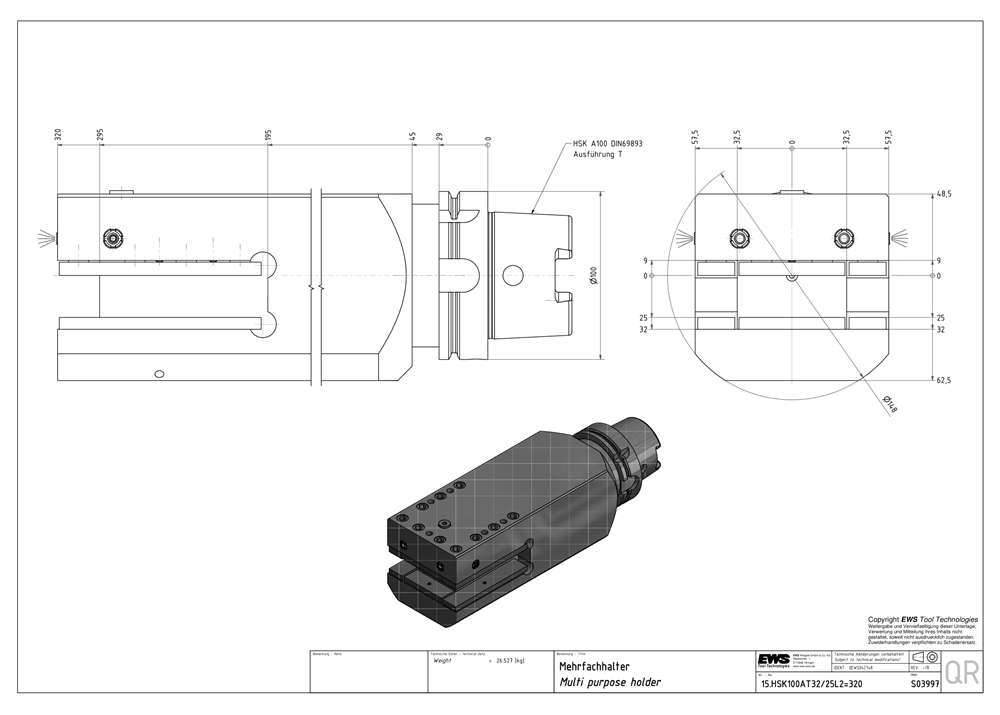 15.HSK100AT32/25L2=320 — HSK100AT with limited tolerance, Multi purpose holder, [150HSK_03_VK32/25],