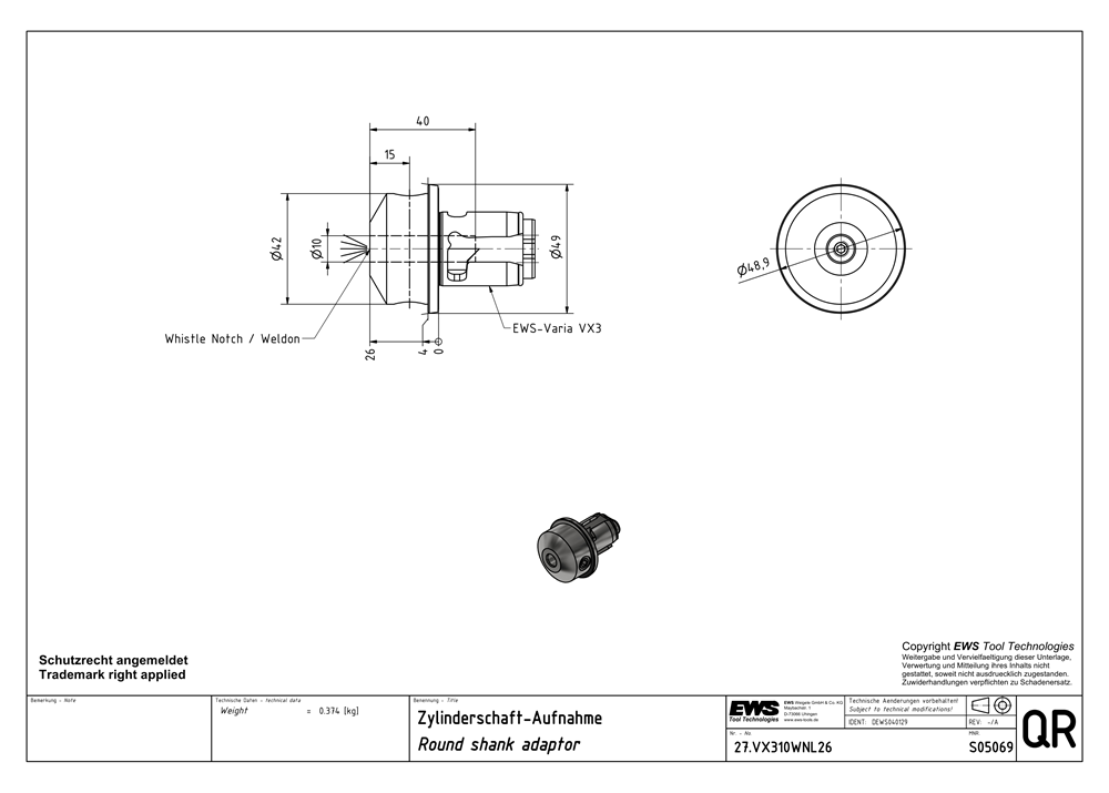 | Interface size | Weldon Ø 10.0 Whistle Notch Ø 10.0 |