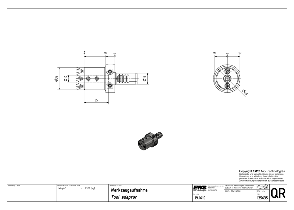 19.1610 — Tool adaptor, hole -Ø 10 mm, DIN 69 880 Form E2,