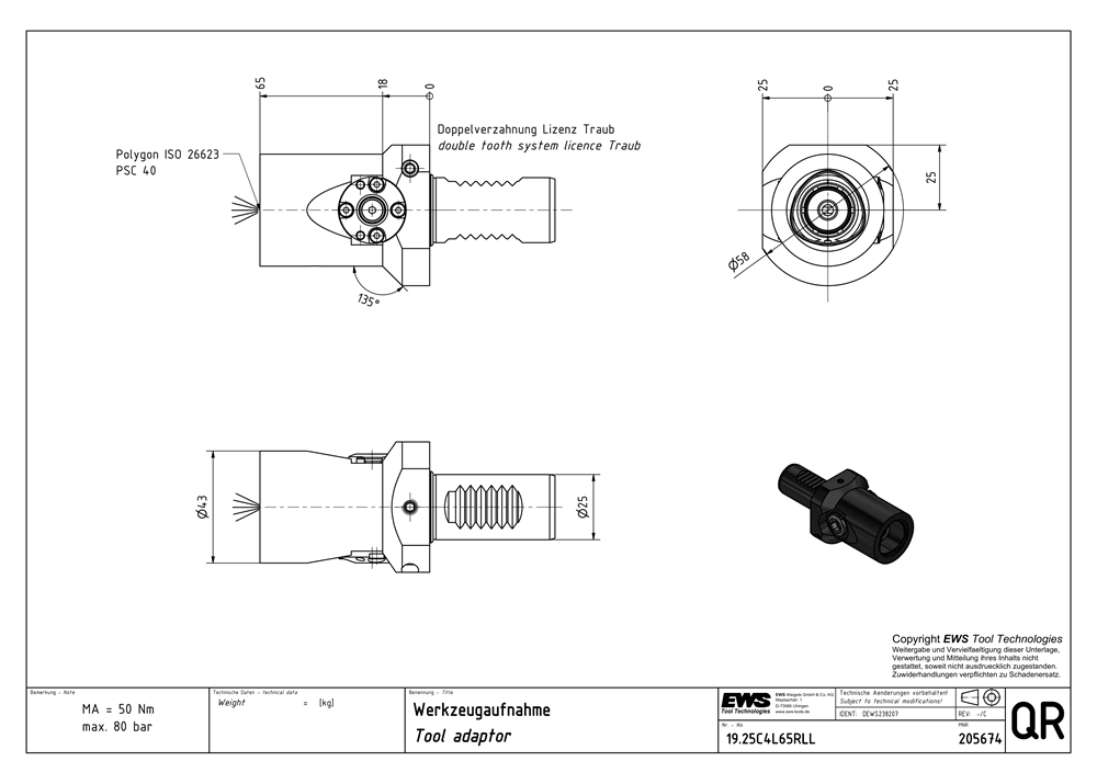 | Shank size | VDI25 |