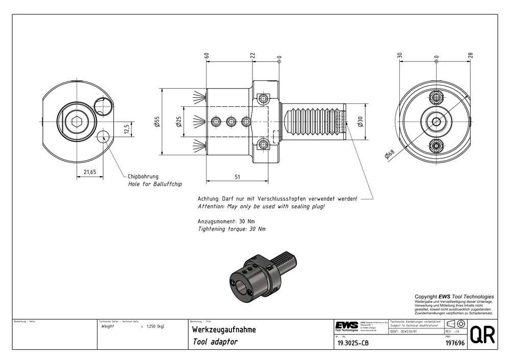 | Mounting diameter, min. (DCONN) | 25.00 mm |