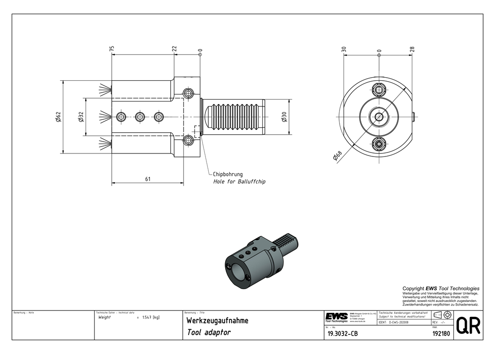 | Interface size | Ø 32.0 (boring bar) |