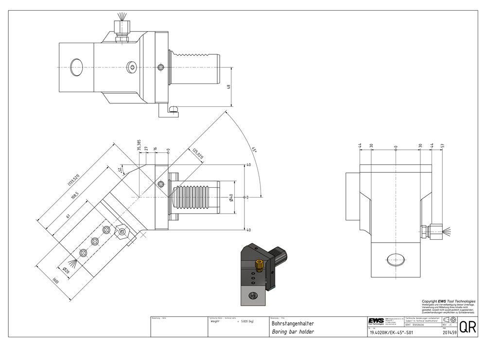 19.4020IK/EK-45°-S01 — Tool adaptor hole -Ø20 mm internal and external coolant [050STAT_10_-45°-S01]