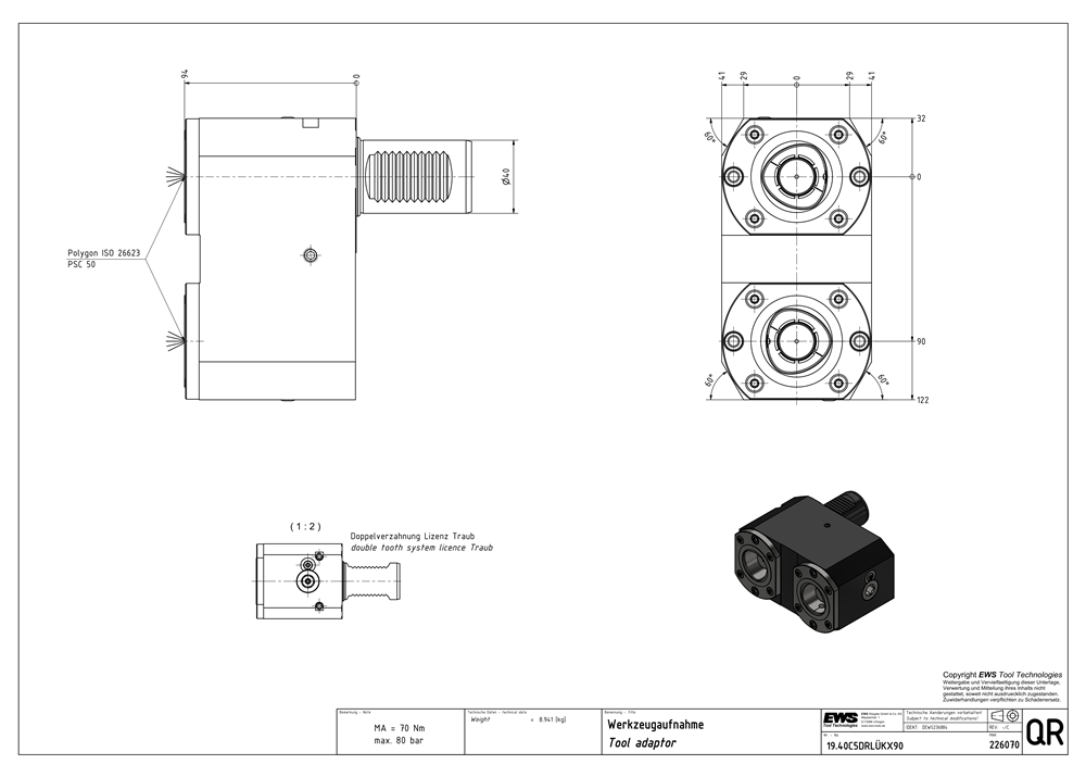 19.40C5DRLÜKX90 — Tool adaptor, Polygon ISO 26623 | PSC 50, double version, double ser., overhead, [050STAT_09_D],