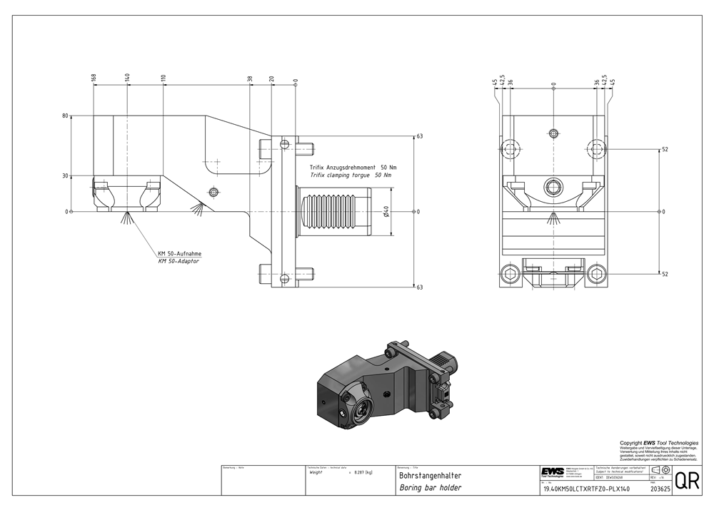 Boring bar holder KM 50 System (License Kennametal) Weight: 8.287