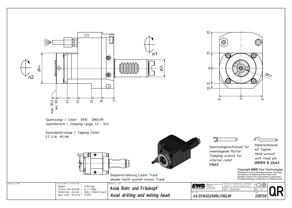 - When tightening the clamping nut, it is essential to counterhold the tool spindle.
