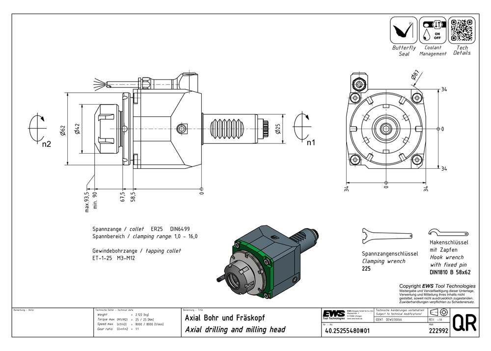 | Interface size | Collet ER25 |