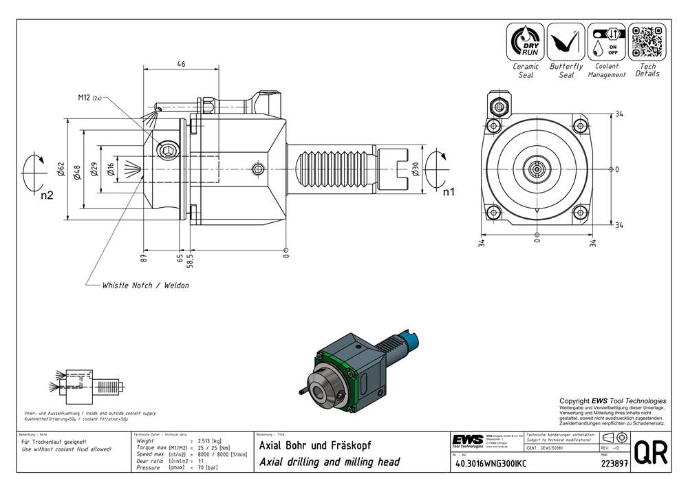 | Interface size | Weldon Ø 16.0 Whistle Notch Ø 16.0 |