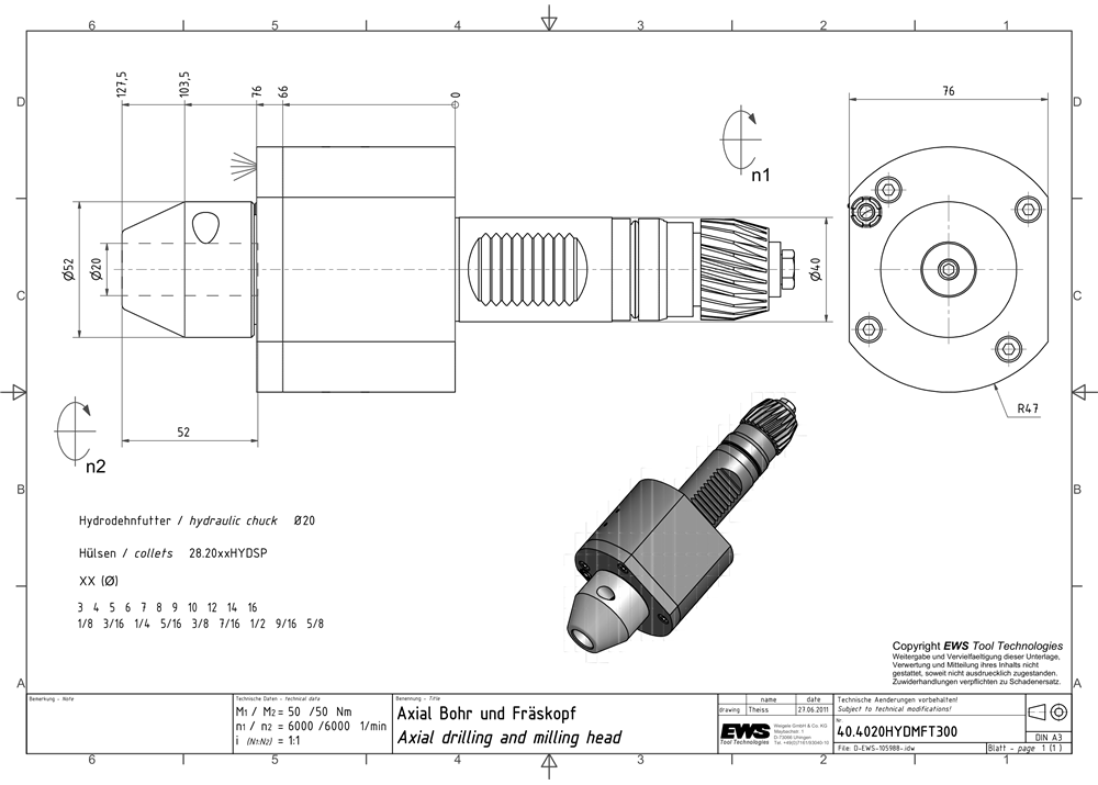 | Interface size | Hydraulic chuck Ø 20.0 |