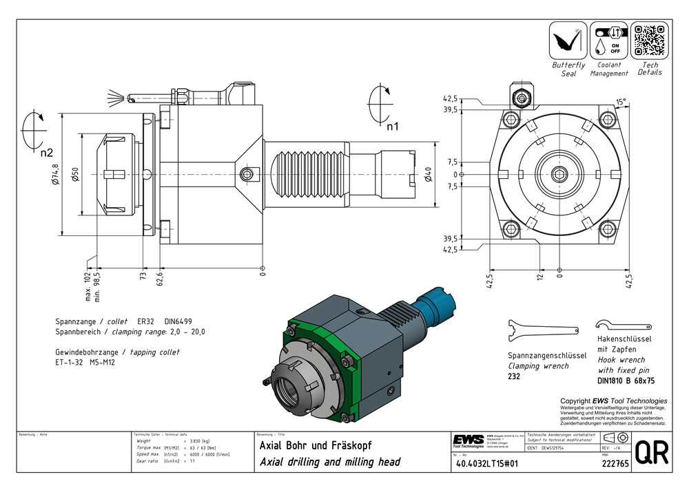 - When tightening the clamping nut, it is essential to counterhold the tool spindle.