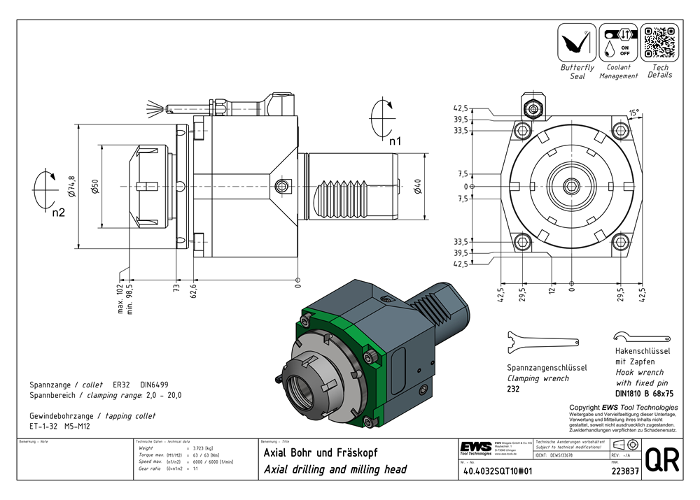 - When tightening the clamping nut, it is essential to counterhold the tool spindle.