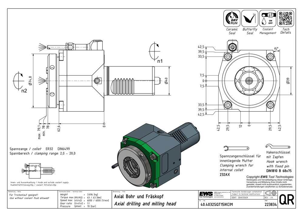 - When tightening the clamping nut, it is essential to counterhold the tool spindle.