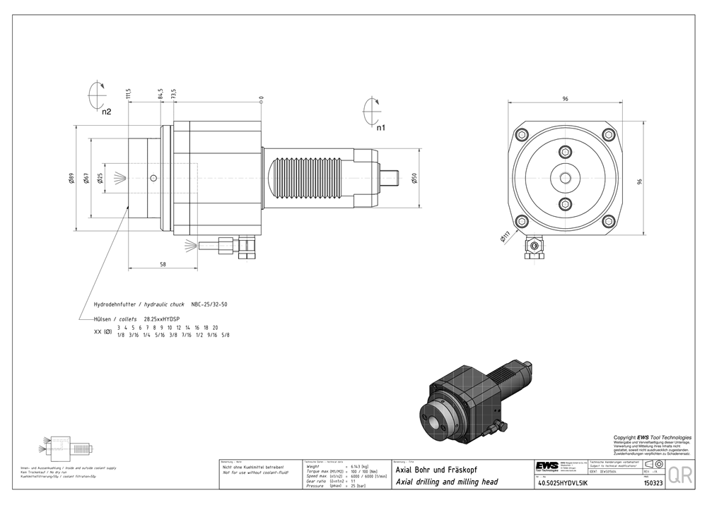 | Schnittstellengröße | Hydraulic chuck Ø 25.0 |