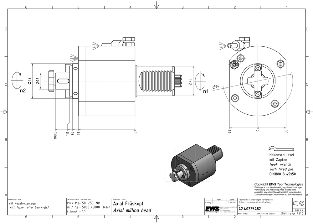 | Interface size | Cutting arbour Ø22 DIN138 (longitudinal and cross groove) |