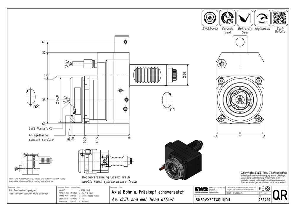 With the patented quick-change system EWS.Varia VX, you perform the tool change faster than your competitors. In addition, your driven tool adapts to your requirements in the future. Due to the modular interface, for each machining process, the ideal tool clamping can be selected.