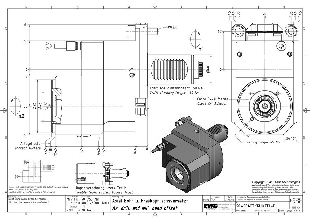 50.40C4CTXRLIKTFL-PL — Ax. drill. and mill. head offset, Polygon ISO 26623 PSC 40, DIN 5480 drive, Int. / ext. coolant pmax = 70bar, i =1:1 direction of rotation inver., adjusting system Trifix / Proline,