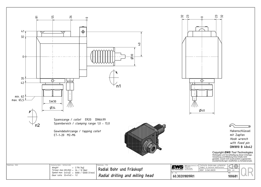 - When tightening the clamping nut it is essential to counterhold the tool spindle.