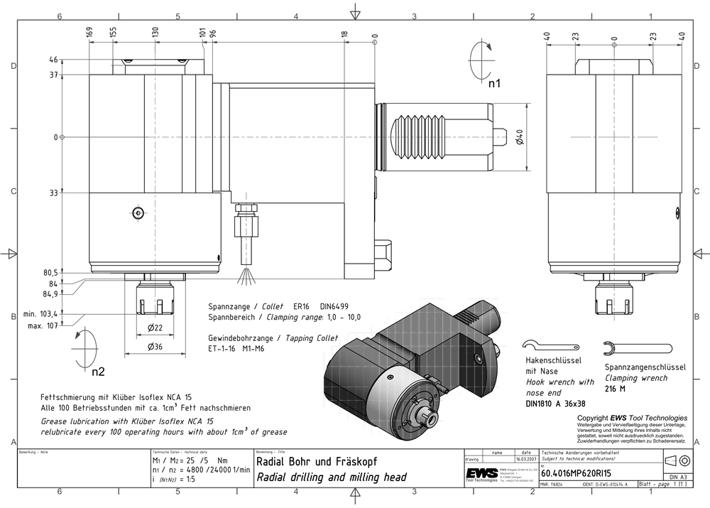 - When tightening the clamping nut, it is essential to counterhold the tool spindle.
