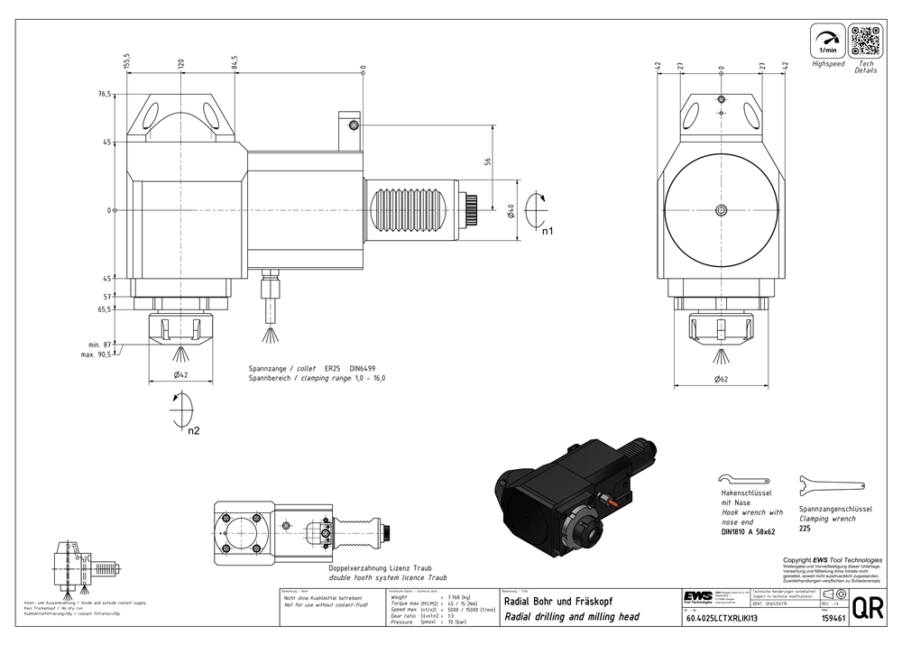 - When tightening the clamping nut, it is essential to counterhold the tool spindle.