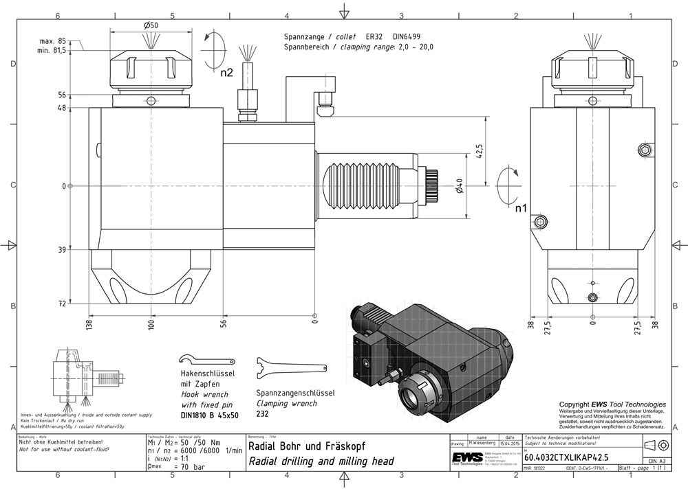 - When tightening the clamping nut it is essential to counterhold the tool spindle.