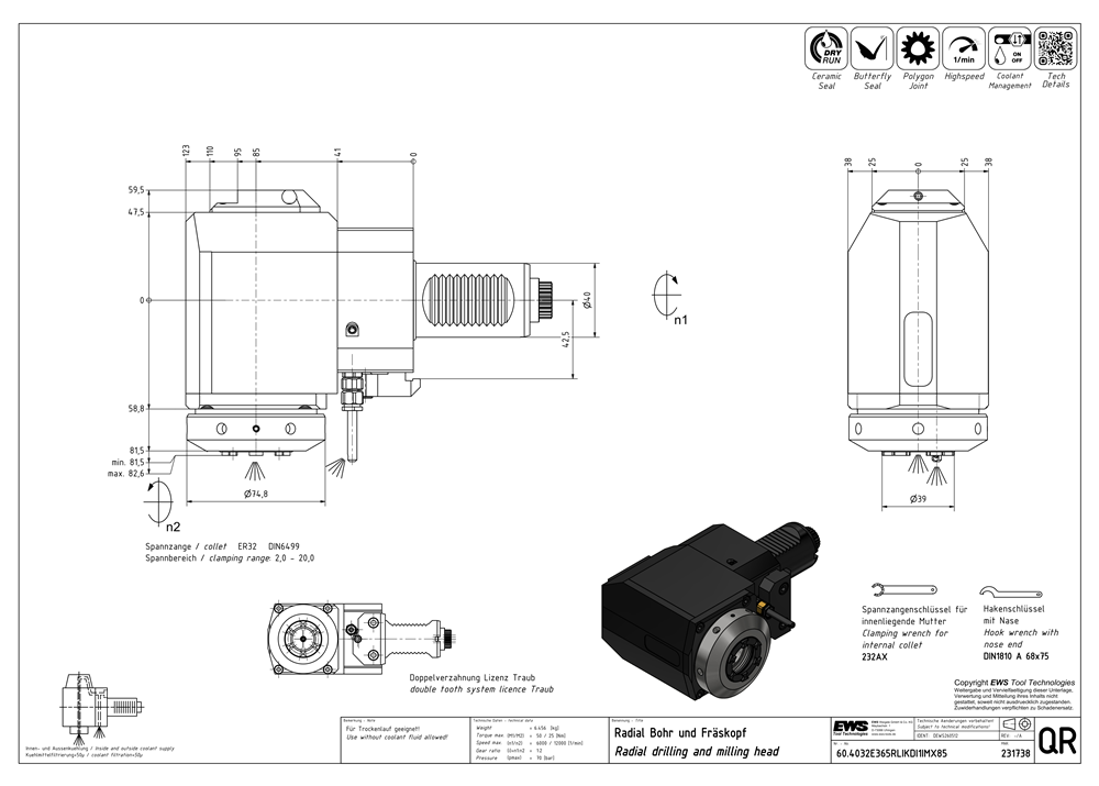 - When tightening the clamping nut, it is essential to counterhold the tool spindle.