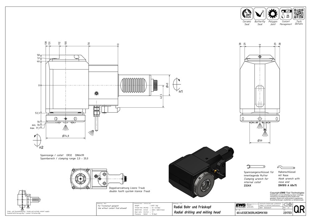 | Interface size | Collet ER32 |