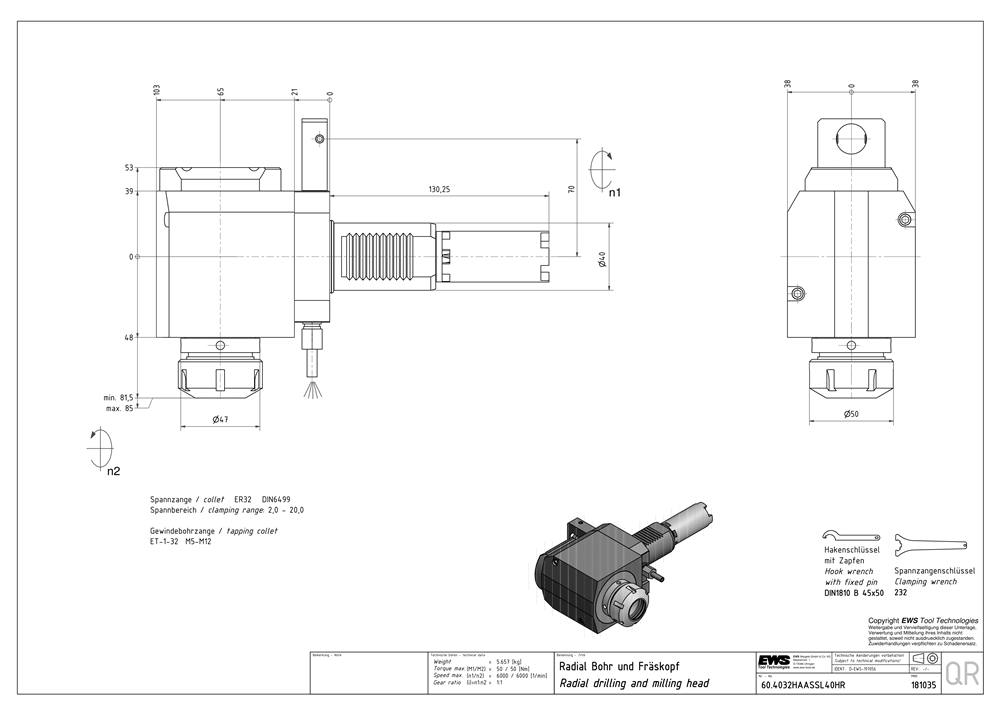 - When tightening the clamping nut, it is essential to counterhold the tool spindle.