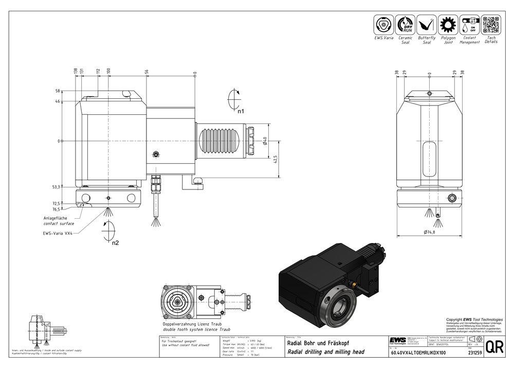 With the patented quick-change system EWS.Varia VX, you perform the tool change faster than your competitors. In addition, your driven tool adapts to your requirements in the future. Due to the modular interface, for each machining process, the ideal tool clamping can be selected.