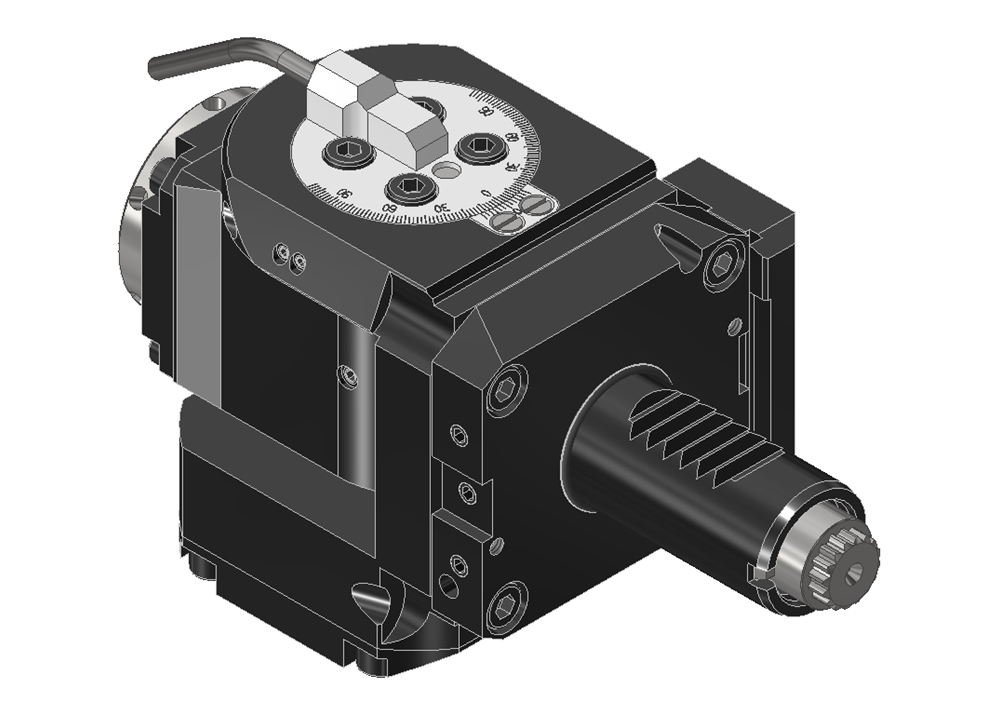 Swivel heads are suitable for machining at special angles. The stepless adjustability of the angle makes the application extremely flexible, which is also the decisive advantage compared to fixed angle heads.