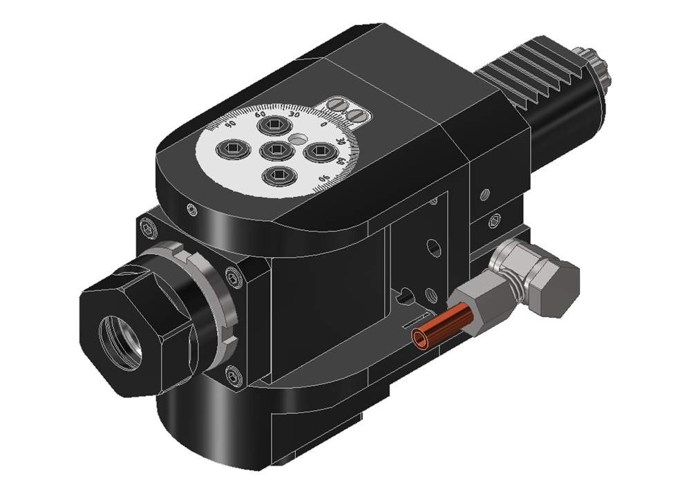 Swivel heads are suitable for machining at special angles. The stepless adjustability of the angle makes the application extremely flexible, which is also the decisive advantage compared to fixed angle heads.