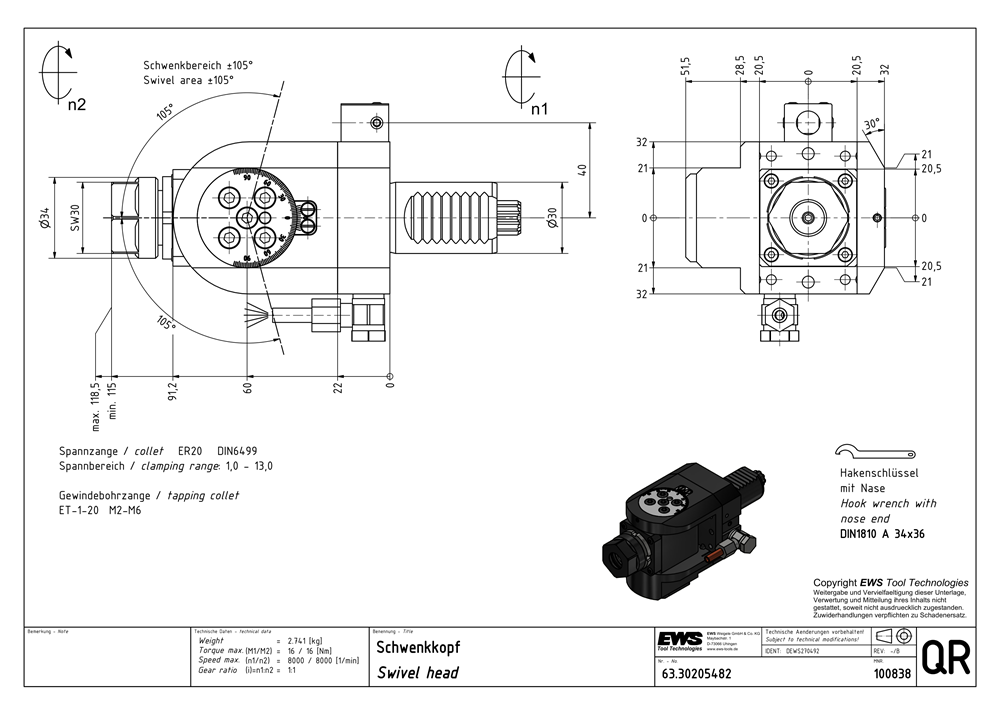 | Interface size | Collet ER20 |