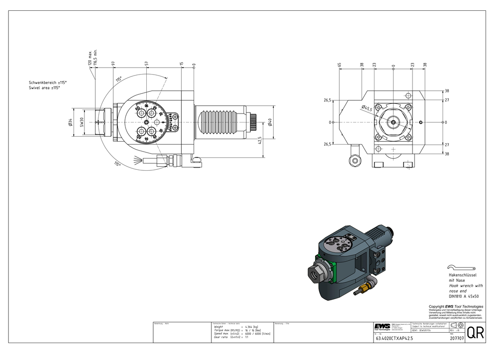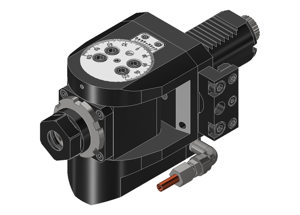 Swivel heads are suitable for machining at special angles. The stepless adjustability of the angle makes the application extremely flexible which is also the decisive advantage compared to fixed angle heads.