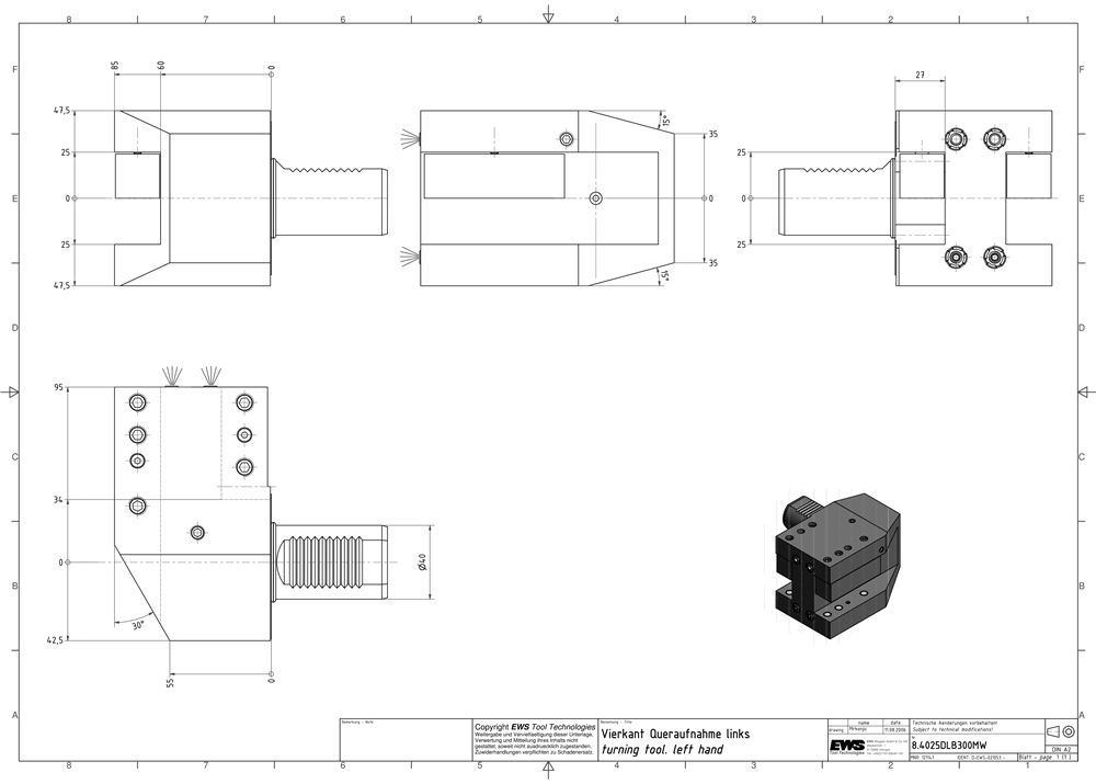 8.4025DLB300MW — turning tool crosswise, Square 25, double version, double mouth one sided
