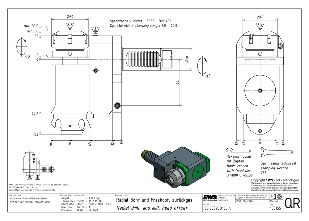 - When tightening the clamping nut it is essential to counterhold the tool spindle.