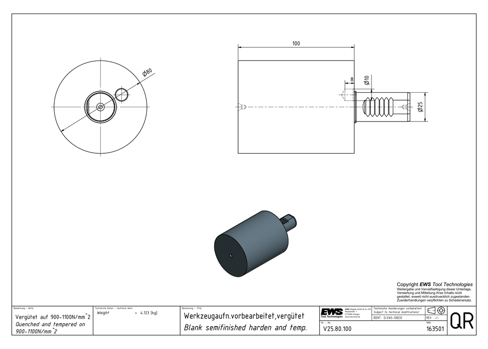 Главная страница » EWS » VDI-Tool-Holders » V25.80.100 — Blank semifinished harden and temp., Shank- Ø25, OD Ø 80